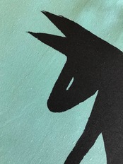 生地はコットン100%の薄め(よくあるエコバッグくらいの薄さ)で、サイズは、縦約42cm、横約36.5cm、持ちて(全長)約68cmです。