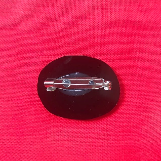 「ニヤリ」顔。 ブラックのつやなしマット・アクリル素材のブローチです。 サイズは、縦30mm、横40mm、厚さ3mm。