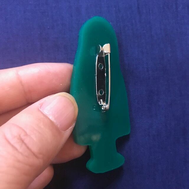 パンを持った女の子のブローチ(みどりアクリル)です。すこし透け感があります。